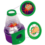 Keep your creatures for a peep, then let them go! This kid-and-bug friendly viewer is easy to use, and lets kids study their catches up close from two views: "a-bug" and below! Features over and under 3X magnifiers, snug-fitting, escape proof creature viewing chamber, and a stable and durable magnifier base. Peep at ladybugs, crickets, worms - anything a young scientist can find! Comes complete with beetle replica. Selected as one of Scientific American Explorations magazine's 15 Great Science Gifts under $15, and Winner of the Oppenheim Toy Portfolio Gold Award. WARNING: CHOKING HAZARD - Small parts. Not for children under 3 yrs. |